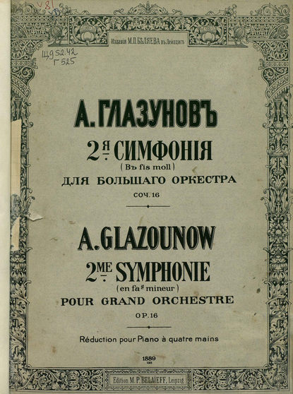 | Полное название книги | Александр Константинович Глазунов, 2 симфония в fis-moll для большого оркестра |