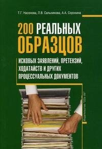 | Полное название книги | А. А. Сорокина, Т. Г. Насонова, Л. В. Сальникова 200 реальных образцов исковых заявлений, претензий, ходатайств и других процессуальных документов |