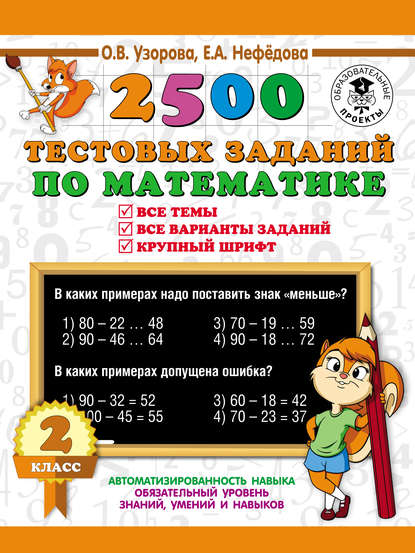 | Полное название книги | Елена Алексеевна Нефедова, Ольга Васильевна Узорова 2500 тестовых заданий по математике. Все темы. Все варианты заданий. 2 класс |