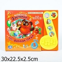В этой книжке с красочными иллюстрациями ваш малыш найдет 3 любимых истории о Винни-Пухе. Можно прочитать забавные истории, а нажав на кнопочку, послушать песенки из мультфильма и подпевать любимым персонажам.