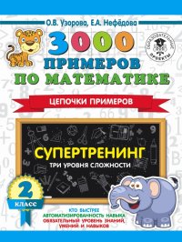 | Полное название книги | Ольга Васильевна Узорова 3000 примеров по математике. Супертренинг. Цепочки примеров. Три уровня сложности. 2 класс |