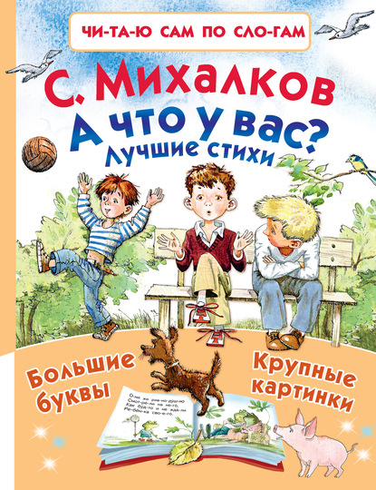 Самые лучшие стихи знаменитого писателя Сергея Михалкова впервые выходят по слогами с ударениями в одной большой и красивой книжке! Теперь те малыши, которые уже знают буквы, сами смогут прочитать весёлые стихотворения, песенки, загадки и считалочки. А большие иллюстрации В. Чижикова, С. Бордюга и Н. Трепенок, Н. Бугославской помогут сделать процесс чтения ещё увлекательнее и поближе познакомят с героями этой книжки.