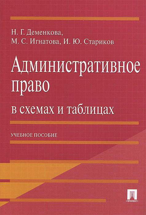 | Полное название книги | Н. Г. Деменкова, И. Ю Стариков, М. С. Игнатова Административное право в схемах и таблицах. Учебное пособие |