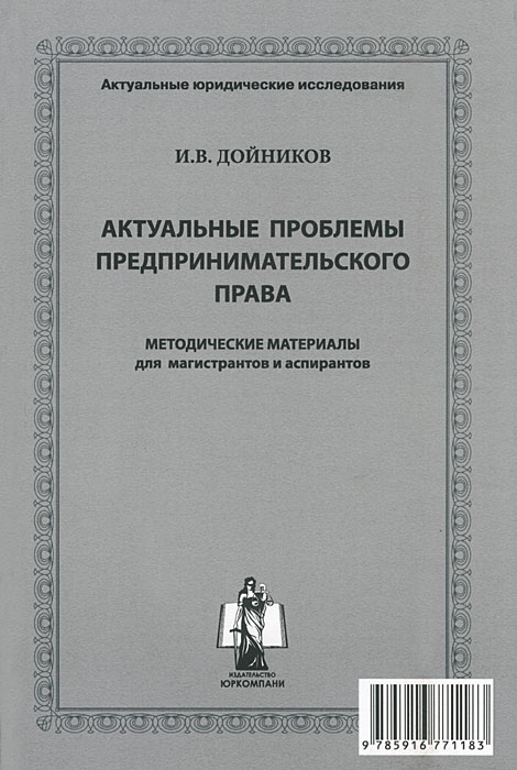 | Полное название книги | И. В. Дойников Актуальные проблемы предпринимательского права. Методические материалы для магистрантов и аспирантов |