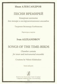 | Полное название книги | И. Александров Александров. Песни времерей. Камерная кантата для тенора и инструменатльного ансамбля. Творения Велимира Хлебникова. Партитура и партии |