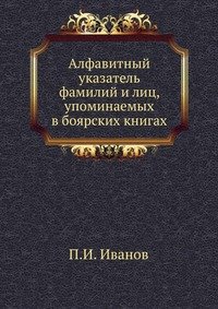 | Полное название книги | П. И. Иванов Алфавитный указатель фамилий и лиц, упоминаемых в боярских книгах |