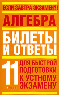 Если завтра экзамен, а вы еще не приступили к его подготовке, то это пособие для вас. Это и многое другое вы найдете в книге Алгебра. Билеты и ответы. Для быстрой подготовки к устному экзамену. 11 класс (Л. И. Слонимский, И. С. Слонимская)
