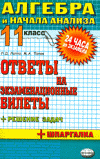 | Полное название книги | Л. Д. Лаппо, М. А. Попов Алгебра и начала анализа 11 класс: ответы на экзаменационные билеты |