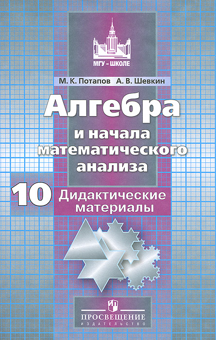 | Полное название книги | М. К. Потапов, А. В. Шевкин Алгебра и начала математического анализа. 10 класс. Базовый и углубленный уровень. Дидактические материалы. Пособие для общеобразовательных организаций |