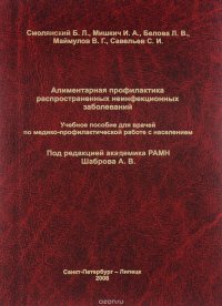 | Полное название книги | И. А. Мишкич, Л. В. Белова, С. И. Савельев, Б. Л. Смолянский, В. Г. Маймулов Алиментарная профилактика распространенных неинфекционных заболеваний. Учебное пособие |