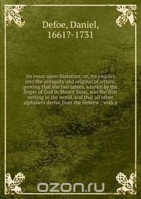 An essay upon literature. Or, An enquiry into the antiquity and original of letters. Proving that the two tables, written by the finger of God in Mount Sinai, was the first writing in the world, and that all other alphabets derive from the Hebrew. With a. Воспроизведено в оригинальной авторской орфографии издания 1726 года (издательство "London : Printed for Tho. Bowles ..."). Это и многое другое вы найдете в книге An essay upon literature (Daniel Defoe)