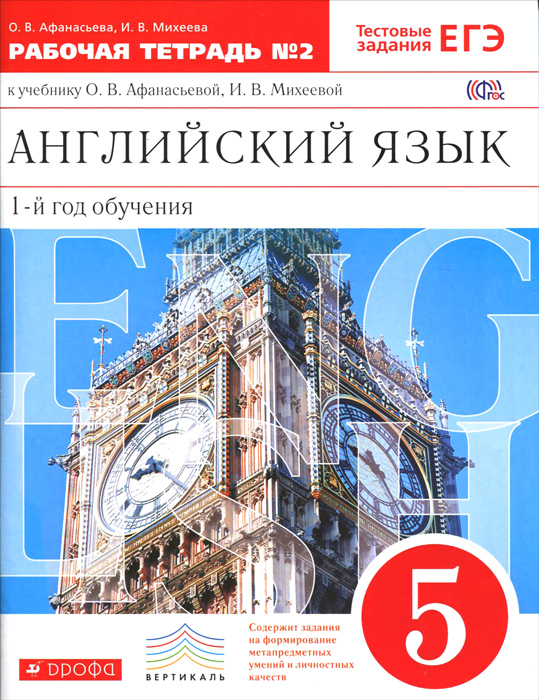 | Полное название книги | И. В. Михеева, О. В. Афанасьева Английский язык. 5 класс. 1 год обучения. Рабочая тетрадь №2. К учебнику О. В. Афанасьевой, И. В. Михеевой |