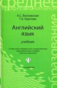 Данный учебник подготовлен в соответствии с государственным стандартом, отвечает требованиям программы по дисциплине "Английский язык" и предназначен для основательной подготовки студентов средних специальных учебных заведений к тестированию, сдаче зачетов и экзаменов. Это и многое другое вы найдете в книге Английский язык (А. С. Восковская, Т. А. Карпова)