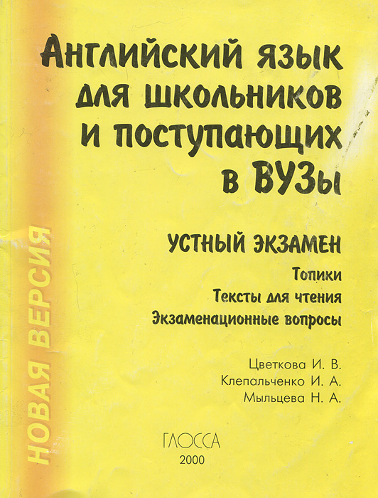 | Полное название книги | Н. А. Мыльцева, И. А. Клепальченко, И. В. Цветкова Английский язык для школьников и поступающих в вузы. Устный экзамен. Топики. Тексты для чтения. Экзаменационные вопросы |