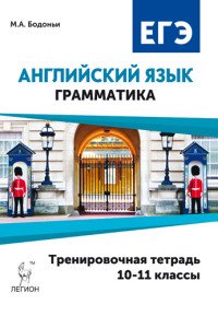 | Полное название книги | М. А. Бодоньи Английский язык. ЕГЭ. Грамматика. 10-11 класс. Тренировочная тетрадь. Учебное пособие |