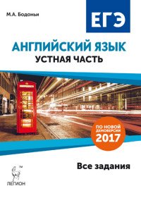 | Полное название книги | М. А. Бодоньи Английский язык. ЕГЭ. Устная часть. Все задания по демоверсии 2017 года. Учебно-методическое пособие |
