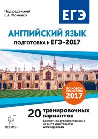 | Полное название книги | Е. А. Фоменко, И. Б. Долгопольская, Т. Е. Тихонова, М. А. Бодоньи Английский язык. Подготовка к ЕГЭ-2017. 20 тренировочных вариантов на демоверсии на 2017 год |