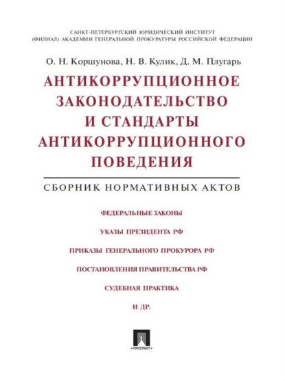 | Полное название книги | Ольга Николаевна Коршунова, Николай Валентинович Кулик, Денис Михайлович Плугарь Антикоррупционное законодательство и стандарты антикоррупционного поведения. Сборник нормативных актов |