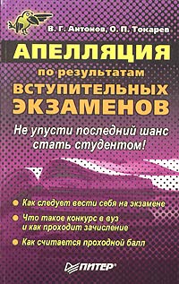 | Полное название книги | О. П. Токарев, В. Г. Антонов Апелляция по результатам вступительных экзаменов |