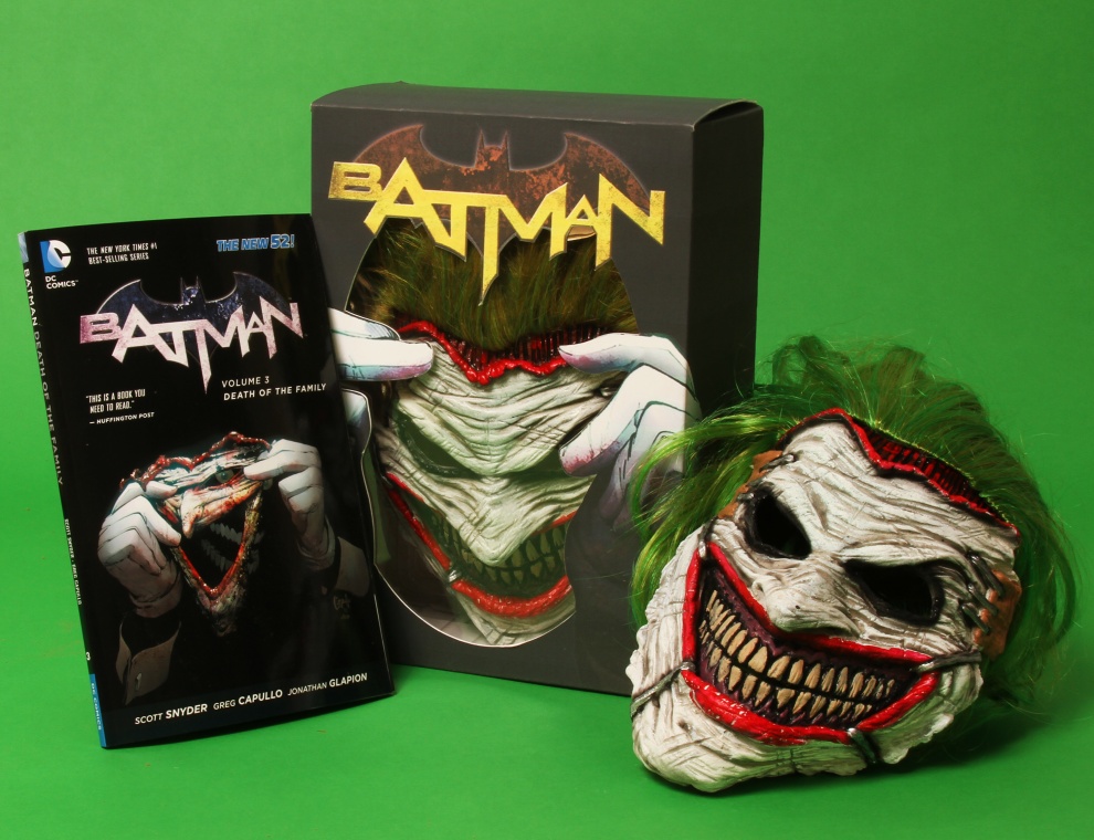 Eisner-Award winner Scott Snyder "s #1 New York Times bestselling graphic novel is now packaged the collectible Joker face mask!