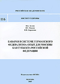| Полное название книги | В. Б. Белов, В. С. Рыкин, К. К. Баранова Бавария в системе германского федерализма: опыт для Москвы как субъекта Российской Федерации |