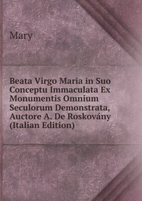 | Полное название книги | Mary Beata Virgo Maria in Suo Conceptu Immaculata Ex Monumentis Omnium Seculorum Demonstrata, Auctore A. De Roskovany (Italian Edition) |