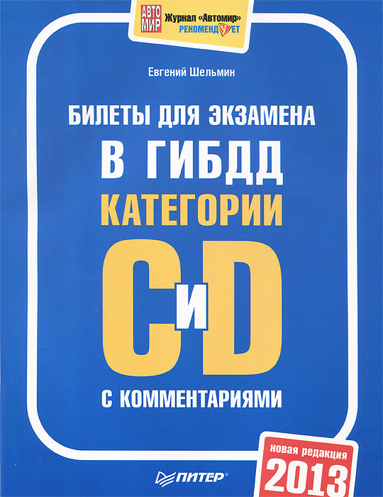 | Полное название книги | Е. Шельмин Билеты для экзамена в ГИБДД с комментариями 2013. Категории С и D |