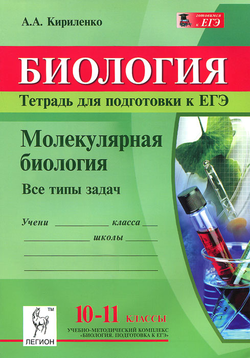 | Полное название книги | А. А. Кириленко Биология. 10-11 классы. Молекулярная биология. Тетрадь для подготовки к ЕГЭ. Все типы задач |