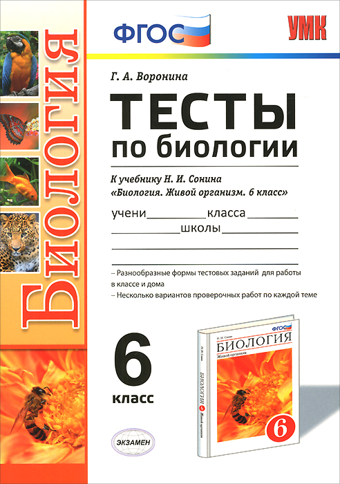 | Полное название книги | Г. А. Воронина Биология. 6 класс. Тесты. К учебнику Н. И. Сонина |