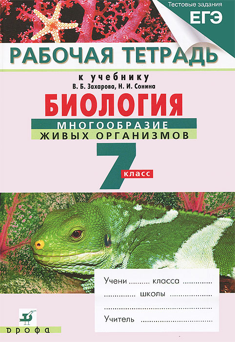 | Полное название книги | В. Б. Захаров, Н. И. Сонин Биология. 7 класс. Многообразие живых организмов. Рабочая тетрадь |