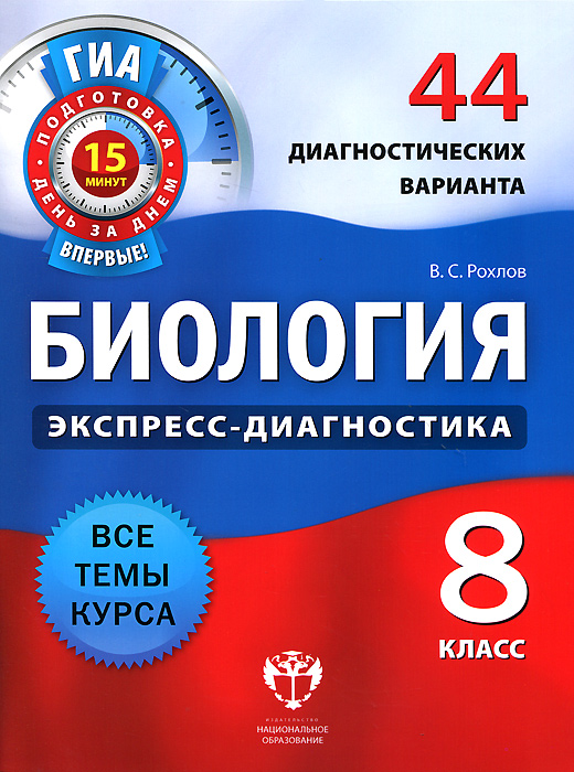| Полное название книги | В. С. Рохлов Биология. 8 класс. 44 диагностических варианта |