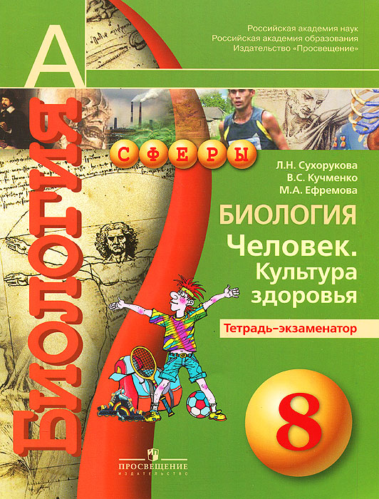 | Полное название книги | М. А. Ефремова, В. С. Кучменко, Л. Н. Сухорукова Биология. 8 класс. Человек. Культура здоровья. Тетрадь-экзаменатор |
