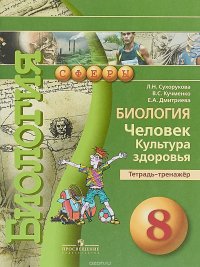 | Полное название книги | В. С. Кучменко, Л. Н. Сухорукова, Е. А. Дмитриева Биология. 8 класс. Человек. Культура здоровья. Тетрадь-тренажер |