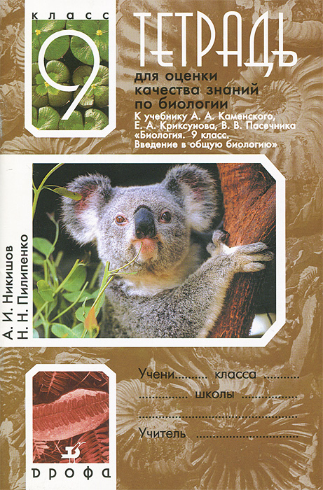 | Полное название книги | Н. Н. Пилипенко, А. И. Никишов Биология. 9 класс. Тетрадь для оценки качества знаний |