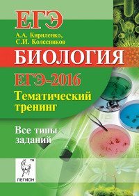 | Полное название книги | С. И. Колесников, А. А. Кириленко Биология. ЕГЭ-2016. Тематический тренинг. Все типы заданий. Учебно-методическое пособие |