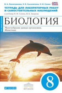 | Полное название книги | В. А. Липатникова, Н. И. Сонин, Н. Б. Сысолятина Биология. Многообразие живых организмов. Животные. 8 класс. Тетрадь для лабораторных работ и самостоятельных наблюдений к учебнику Н. И. Сонина, В. Б. Захарова |