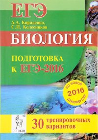 | Полное название книги | С. И. Колесников, А. А. Кириленко Биология. Подготовка к ЕГЭ-2016. 30 тренировочных вариантов по демоверсии на 2016 год |