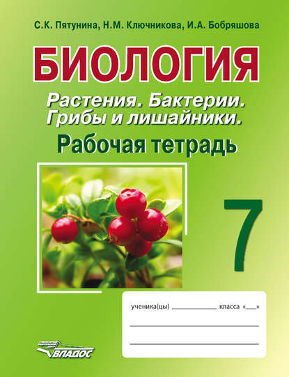 | Полное название книги | Светлана Камильевна Пятунина, Ирина Александровна Бобряшова, Надежда Михайловна Ключникова Биология. Растения. Бактерии. Грибы и лишайники. 7 класс. Рабочая тетрадь |