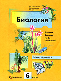| Полное название книги | В. С. Кучменко, И. Н. Пономарева Биология. Растения. Бактерии. Грибы. Лишайники. 6 класс. Рабочая тетрадь № 1 |
