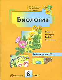 | Полное название книги | В. С. Кучменко, И. Н. Пономарева Биология. Растения. Бактерии. Грибы. Лишайники. Рабочая тетрадь № 2. 6 класс |