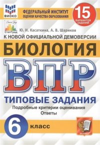 | Полное название книги | Ю. Н. Касаткина Биология. Всероссийская проверочная работа. 6 класс. Типовые задания. 15 вариантов заданий. Подробные критерии оценивания. Ответы |