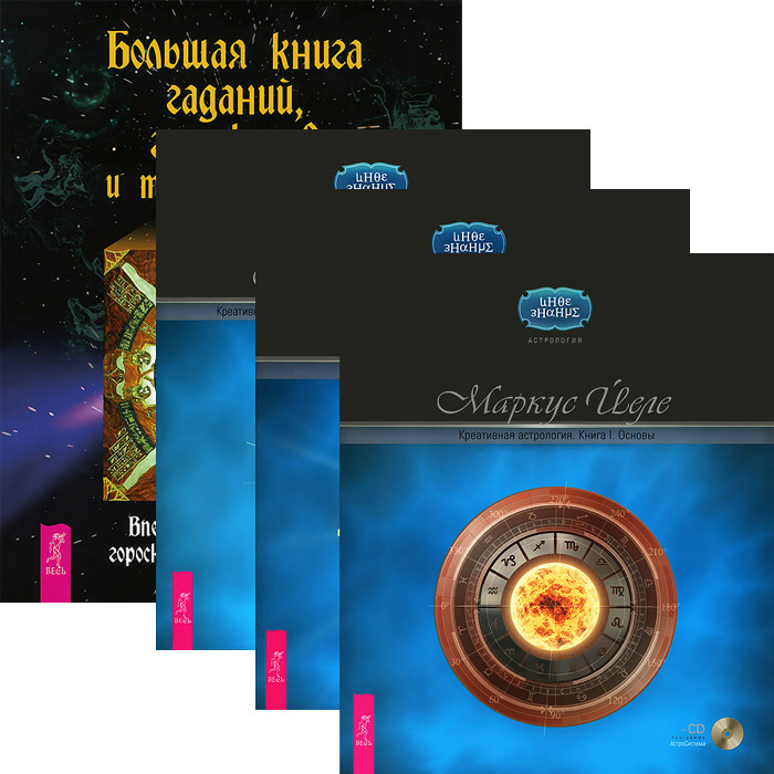 Более подробную информацию о книгах, вошедших в комплект, вы сможете узнать, пройдя по ссылкам: "Большая книга гаданий, гороскопов и толкований снов" , "Креативная астрология. Книга 1. Основы (+ CD-ROM)" , "Креативная астрология. Книга 2. Прогнозы, транзиты (+ CD-ROM)" , "Креативная астрология. Книга 3. Любовь, супружеские отношения (+ CD-ROM)" . Это и многое другое вы найдете в книге Большая книга гаданий. Креативная астрология. В 3 книгах (комплект из 4 книг + 3 CD-ROM) (Маркус Йеле)
