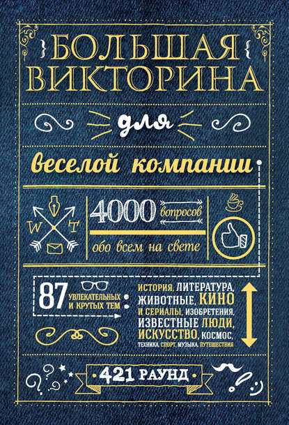 Не знаете, чем заняться субботним вечером в компании друзей или семьи? Соберите всех и устройте викторину! В этой книге вы найдете 4000 интересных вопросов, поделенных на 421 тематический раунд на любой вкус. Веселый вечер и удовольствие каждому обеспечены! Можно разбиться на команды, устроить турнир или просто проверить свои знания, в любом случае скучать точно не придется. Также книга издана под названием «Большая викторина для веселой компании».