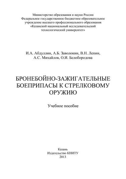 | Полное название книги | А. С. Михайлов, И. А. Абдуллин, А. Б. Заволокин, В. Н. Лепин Бронебойно-зажигательные боеприпасы к стрелковому оружию |