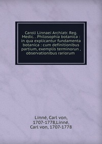 | Полное название книги | Carl von Linne Caroli Linnaei Archiatr. Reg. Medic. . Philosophia botanica : in qua explicantur fundamenta botanica : cum definitionibus partium, exemplis terminorun , observationibus rariorum |