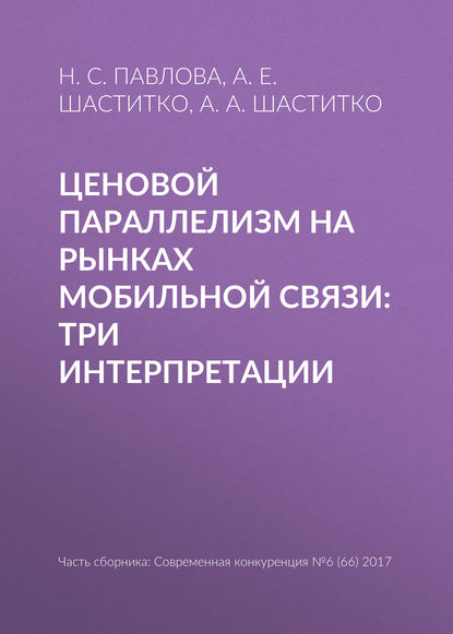 | Полное название книги | Н. С. Павлова, Андрей Евгеньевич Шаститко, А. А. Шаститко Ценовой параллелизм на рынках мобильной связи: три интерпретации |