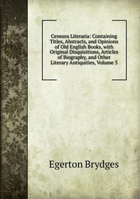 | Полное название книги | Egerton Brydges Censura Literaria: Containing Titles, Abstracts, and Opinions of Old English Books, with Original Disquisitions, Articles of Biography, and Other Literary Antiquities, Volume 3 |