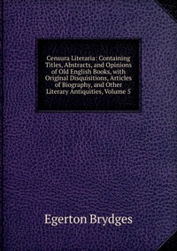 | Полное название книги | Egerton Brydges Censura Literaria: Containing Titles, Abstracts, and Opinions of Old English Books, with Original Disquisitions, Articles of Biography, and Other Literary Antiquities, Volume 5 |