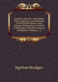 | Полное название книги | Egerton Brydges Censura Literaria: Containing Titles, Abstracts, and Opinions of Old English Books, with Original Disquisitions, Articles of Biography, and Other Literary Antiquities, Volumes 1-2 |