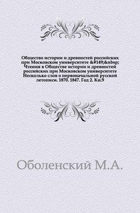 | Полное название книги | Коллектив авторов Чтения в Обществе истории и древностей российских при Московском университете. Заседание 26 апреля 1847г |